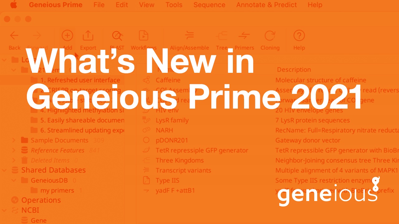 - Geneious Prime gets a new look: Enjoy the new look and feel of Geneious Prime with an updated design, including new icons and font.